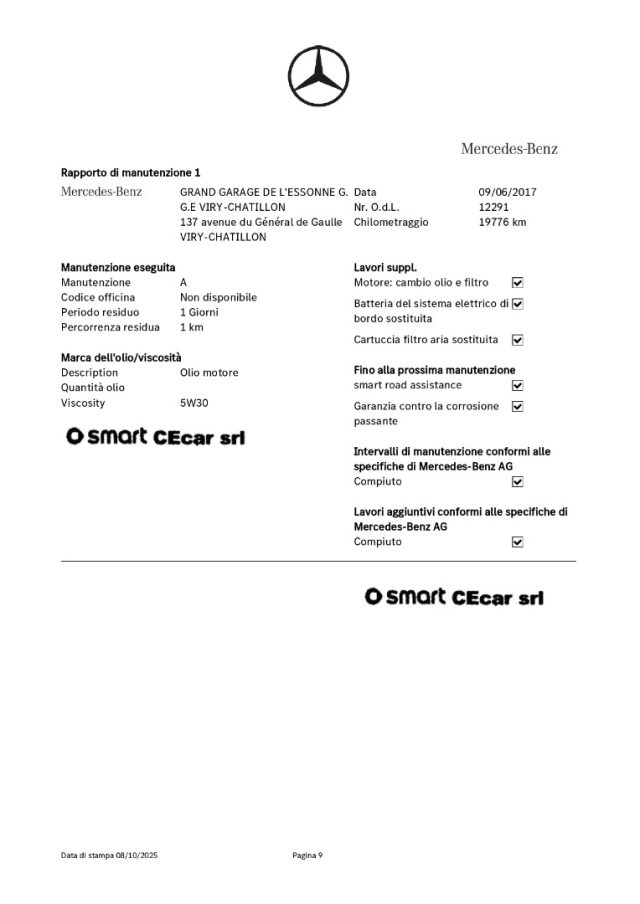 9° TAGLIANDO A KM. 72.766 IN DATA 05.06.2025