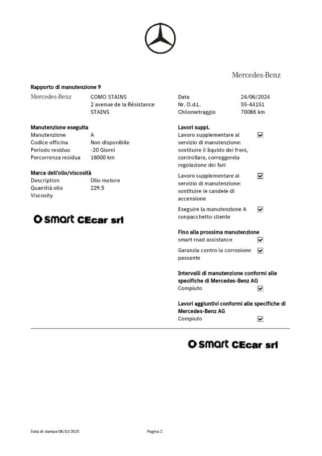8° TAGLIANDO A KM. 70.066 IN DATA 24.06.2024