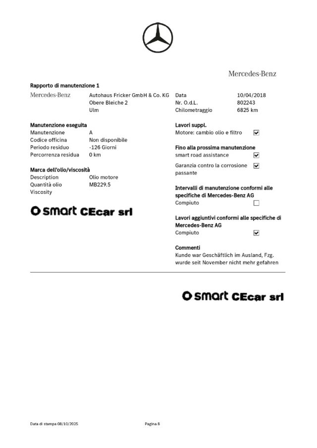 1° TAGLIANDO A KM. 6.825 IN DATA 10.04.2018