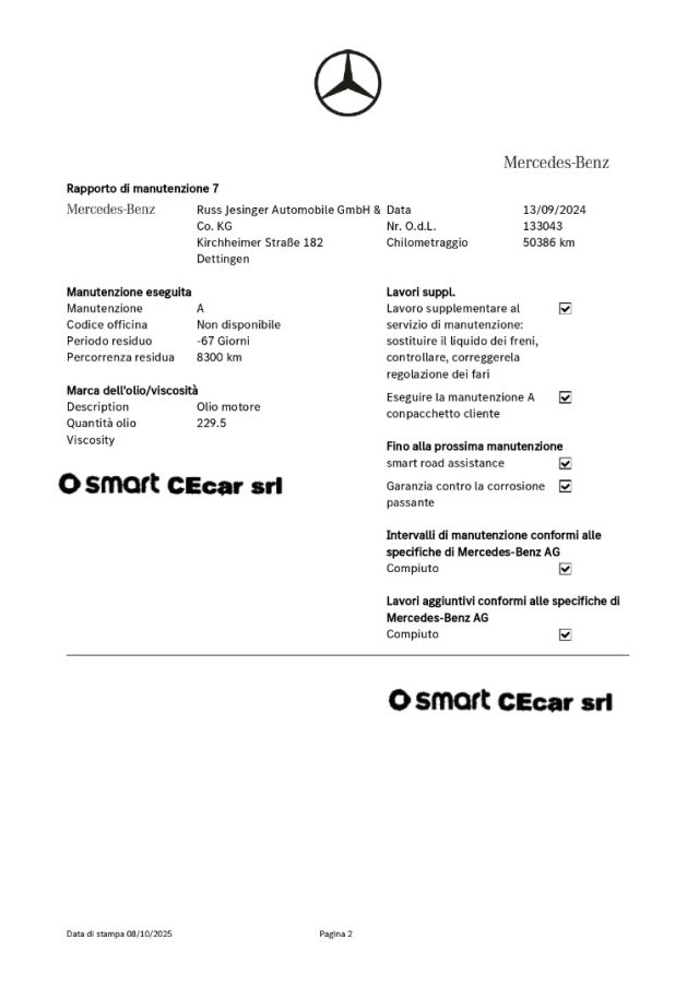 7° TAGLIANDO A KM. 50.386 IN DATA 13.09.2024