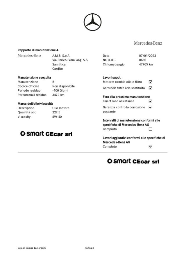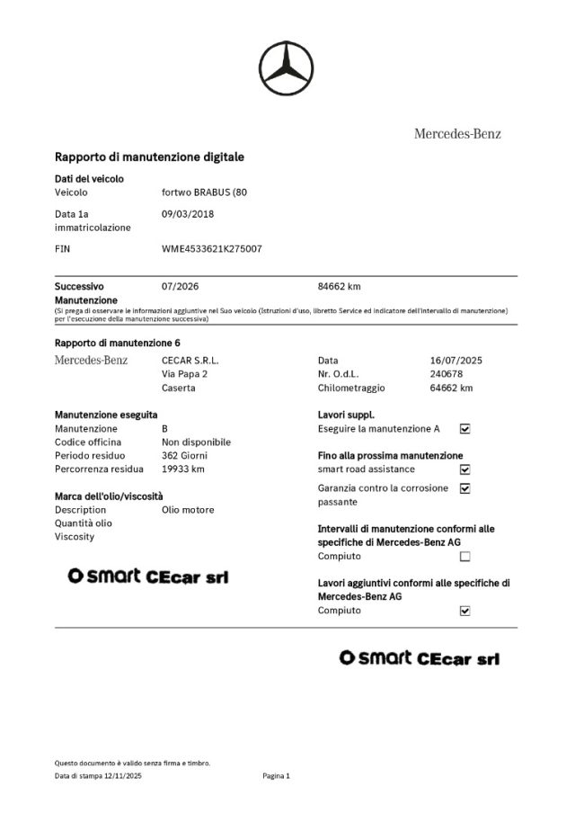 DSB DIGITAL SERVICE BOOKING EFFETTUTATA SU QUESTA VETTURA (manutenzione ufficiale database Fabbrica Smart):