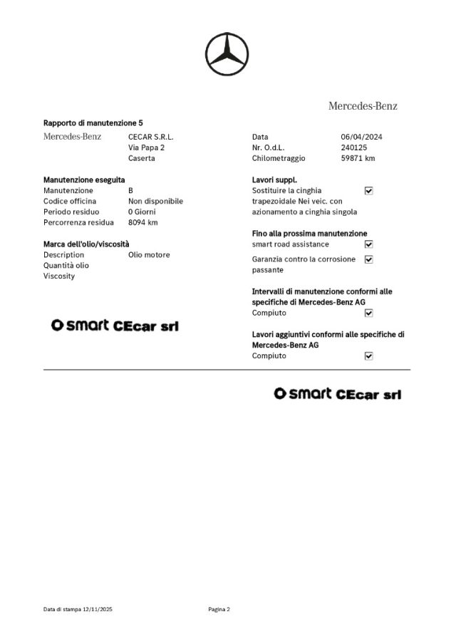 5° TAGLIANDO A KM 59.871 IN DATA 06.04.2024