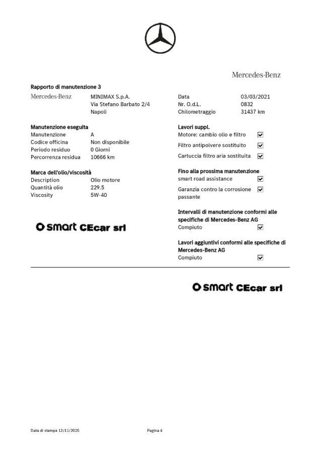 3° TAGLIANDO A KM 31.437 IN DATA 03.03.2021