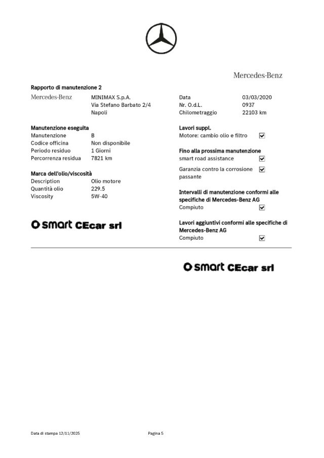 2° TAGLIANDO A KM 22,103 IN DATA 03.03.2020
