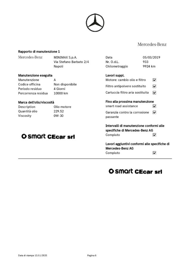 1° TAGLIANDO A KM 9.924 IN DATA 05.03.2019